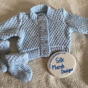 It has been knitted with Stylecraft Babies DK yarn using two contrasting shades.