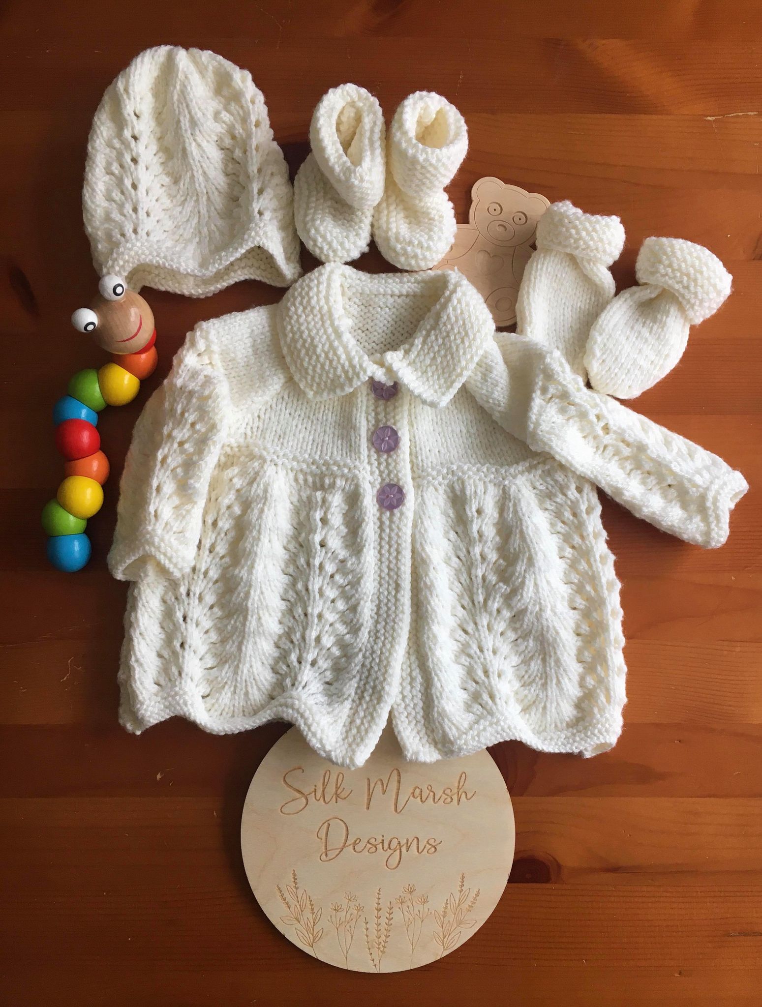 “MARGARET” Matinee Jacket, Hat, Mitts and Booties