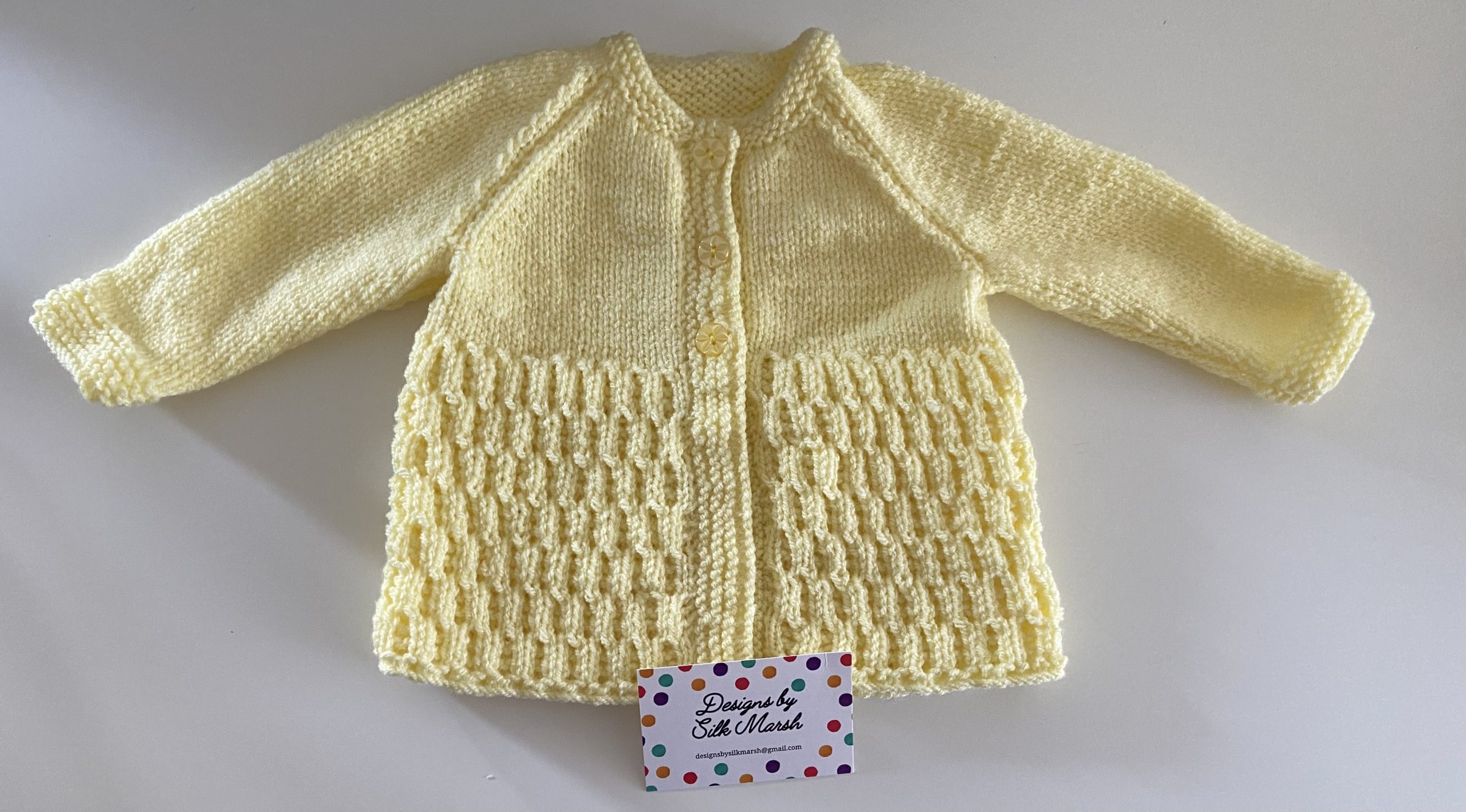 Our Wivanee design is a Baby Knitting Pattern for a beautiful Matinee Jacket in three sizes 14″, 16″ and 18” chest, approx ages Newborn to 12 months.