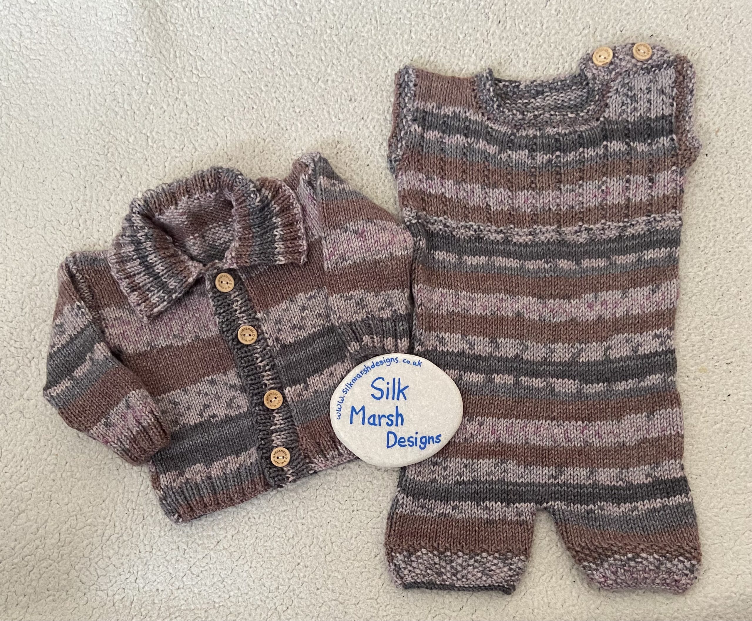 Our Xander Baby Set includes a Playsuit and Cardigan. Our Xander design was knitted in Woolcraft Baby Lux DK yarn. This design will fit chest sizes 16-20” which is an approximate age of Birth-24 months.